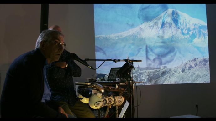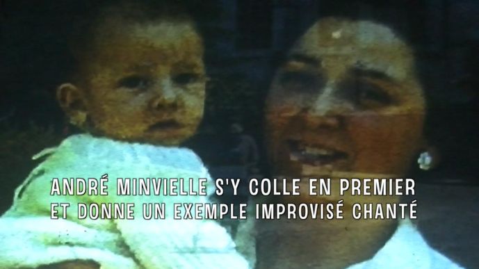 C’est avec « Grand Cinémots » et le philosophe Jean-François Cazeaux que la main-vielle faisait ses premières apparitions publiques en tant que projectrice d’images… Cette proposition artistique prend la forme d’une conversation à trois voix : André Minvielle, le cinéma et les commentaires parlés de Jean François Cazeaux qui pourrait être l’autre (ou les autres), celui qui cherche du sens à partir des images et des sons …